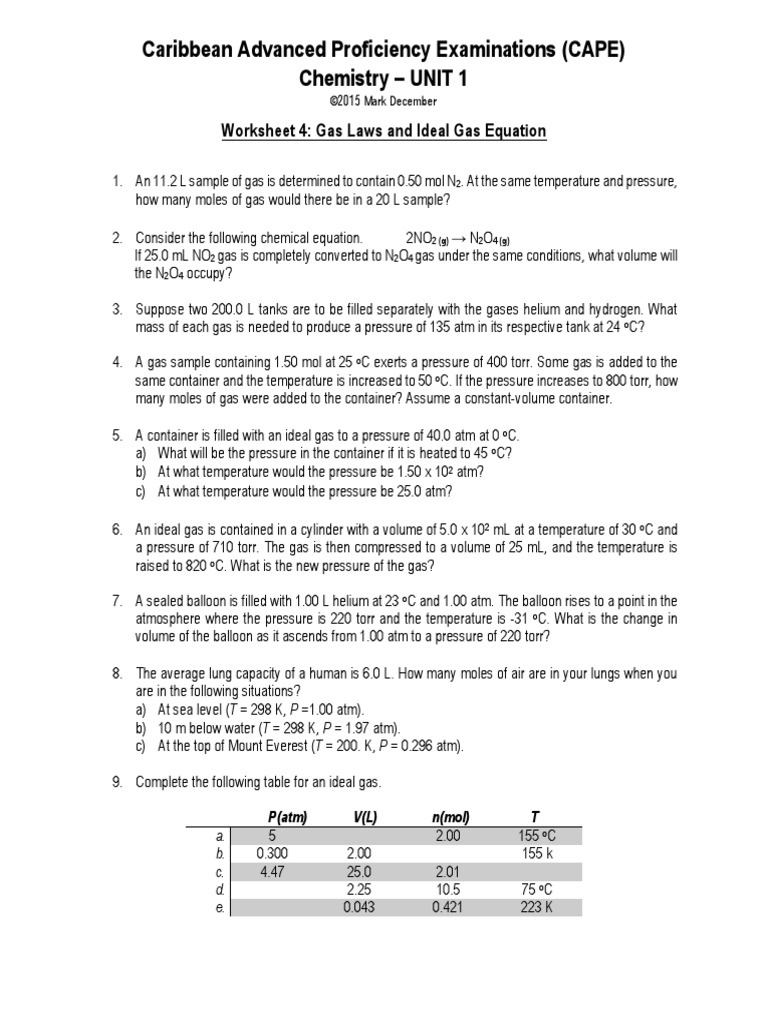 Worksheet On Ideal Gas Equation : Ideal Gas Law Worksheet - You Calendars : If the gas were ideal than this equation allows calculation of the number of moles of the gas present at specific conditions of pressure, volume and temperature.. So let's apply our ideal. The ideal gas equation will only give correct values if the temperature in expressed in degrees celcius. By saying (above) the equation of state for the ideal gas, we have really narrowed our range. In this chemistry worksheet, learners use the ideal gas equation site by clicking on the new question button and responding to the question that is presented in the box. Number of moles in 1.6 kg of oxygen is multiple choice questions (mcq) on ideal gas equation with choices 30 mol, 50 mol, 40 mol, and 60 mol for colleges that offer.